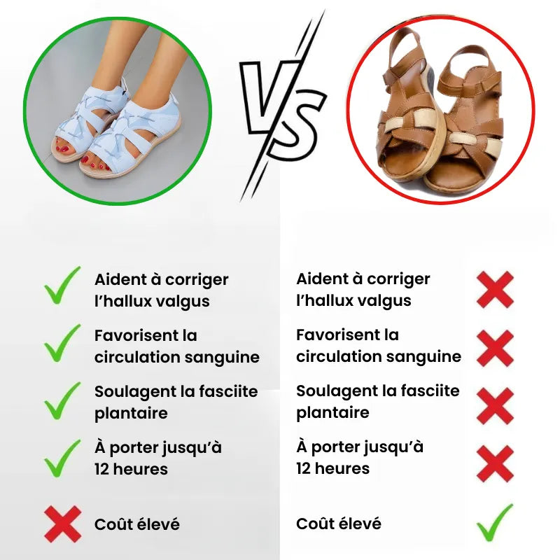 Découvrez Liora™, les sandales conçues pour allier bien-être et style au quotidien. Grâce à leur semelle ultra-confortable, elles soulagent efficacement vos douleurs plantaires.