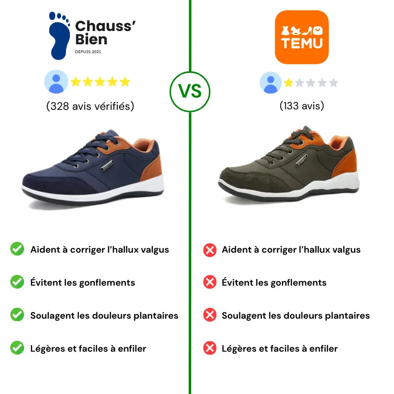 • "Très confortables, faciles à enfiler et je peux marcher toute la journée sans gêne. Moi qui ai souvent mal au dos, je sens la différence."